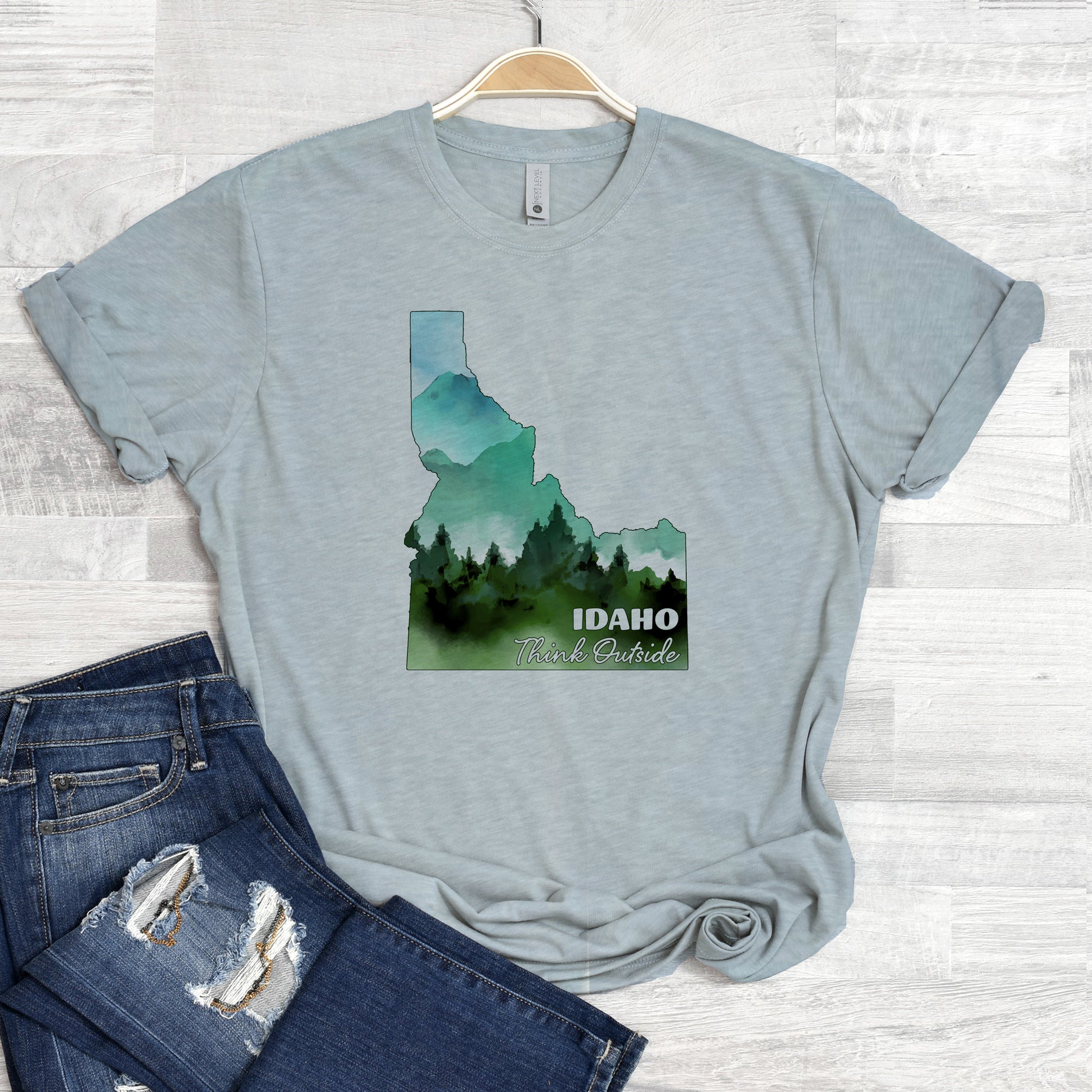 This design epitomizes what we love best about Idaho....Being Outside!  This tee can be sported on all your outdoor adventures.  It is also a great run around town tee, or perfect for supporting all of our kids outdoor activities.  We particularly love this tee on Heather Olive or Stonewash Denim.  Men and women both love this design.19.99