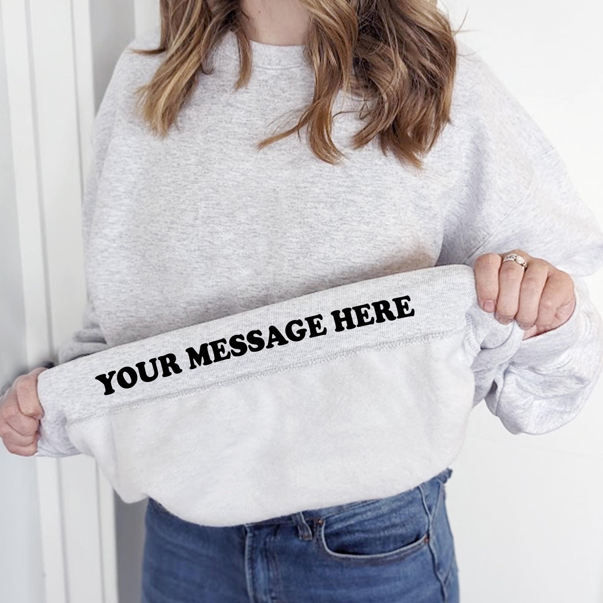 Wrap your loved ones in something special with this cozy secret hidden message sweatshirt. A unique message is printed on the inside of the hem for the known only to the wearer, making it the perfect way to express your affection. You can leave the front blank, or you can choose a Cranky Tee design to add to the shirt to fit their personality.  These sweatshirts make a super rad and thoughtful gift.
